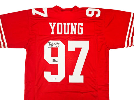San Francisco 49ers Bryant Young Autographed Red Jersey "HOF 22" Beckett BAS Witness Stock #218751