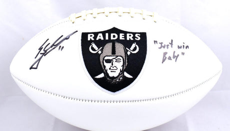 Sebastian Janikowski Signed Raiders Logo Football w/ Just Win Baby-BeckettW Holo