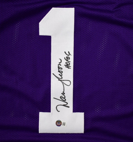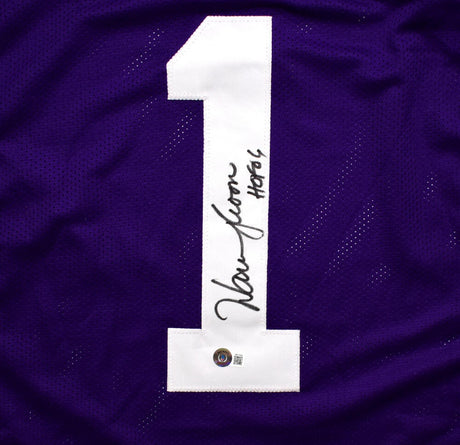 Warren Moon Autographed Purple College Style Jersey w/HOF - Beckett W Hologram