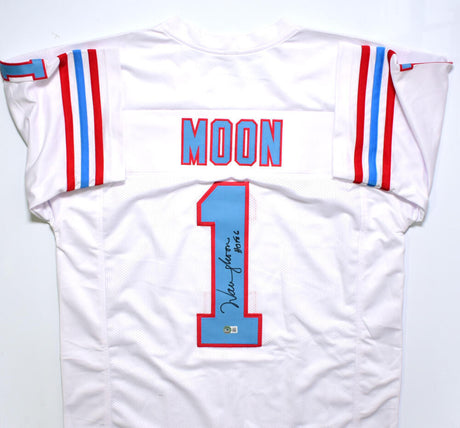 Warren Moon Autographed White Pro Style Jersey w/ HOF-Beckett W Hologram *Black