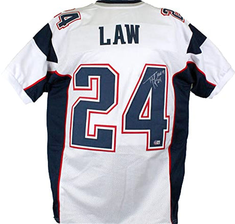 Ty Law Autographed White Pro Style Jersey w/HOF-Beckett W Hologram *Silver