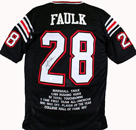 Marshall Faulk Autographed Black College Style STAT Jersey-Beckett W Hologram