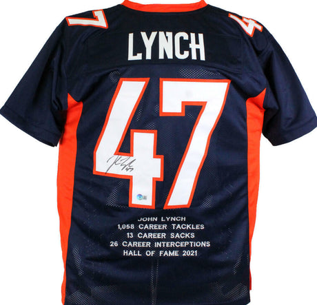 John Lynch Autographed Blue Pro Style STAT Jersey- Beckett W Hologram *Black