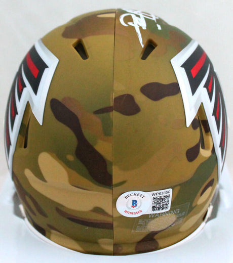 Deion Sanders Autographed Atlanta Falcons Camo Speed Mini Helmet- Beckett W Holo