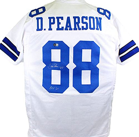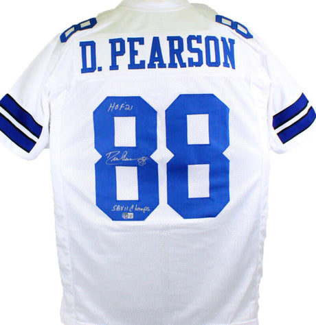 Drew Pearson Autographed White Pro Style Jersey w/ HOF- Beckett W Holo *Silver