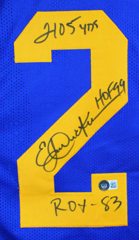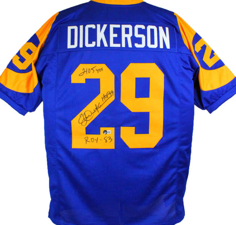Eric Dickerson Autographed Blue Pro Style Jersey w/3 Insc.-Beckett W Hologram *Black