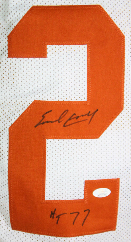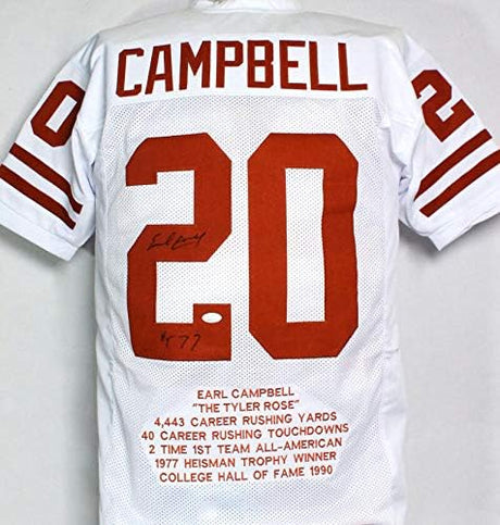 Earl Campbell Autographed White College Style Jersey STAT 4 w/ HT - JSA W Auth *