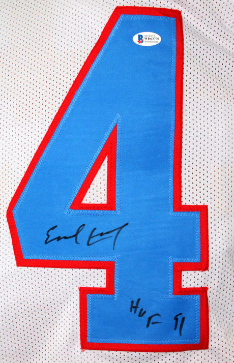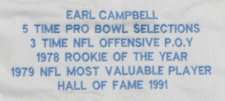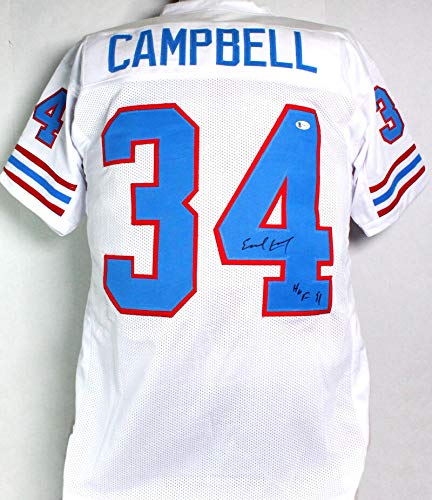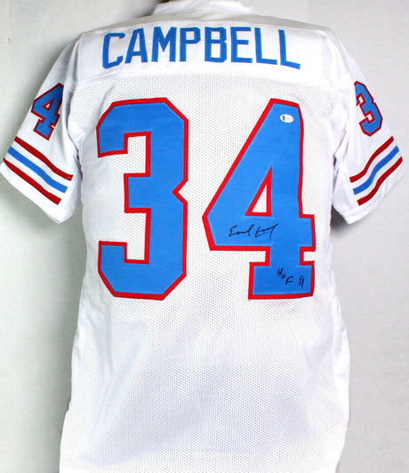 Earl Campbell Autographed White Pro Style Jersey w/ HOF - Beckett W Auth *4