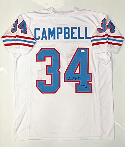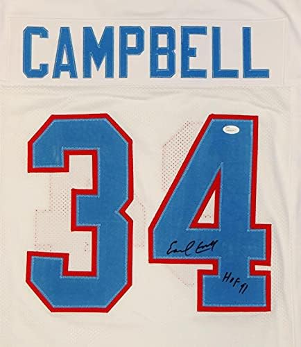 Earl Campbell Autographed White Pro Style Jersey With HOF- JSA W *Black