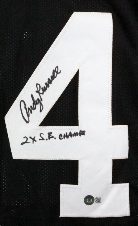 Andy Russell Autographed Black Pro Style Jersey w/SB Champs-Beckett W Hologram