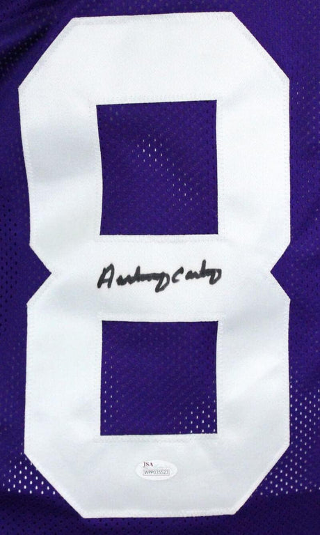 Anthony Carter Autographed Purple Pro Style Jersey- JSA Witness Authenticated *1