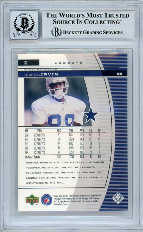 1999 Upper Deck #60 Michael Irvin Dallas Cowboys BGS Autograph 10