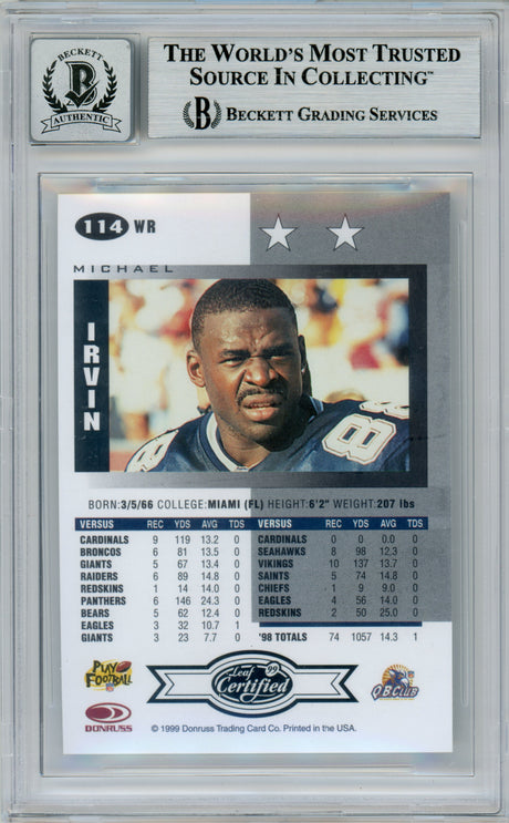 1999 Leaf Certified #114 Michael Irvin Dallas Cowboys BGS Autograph 10