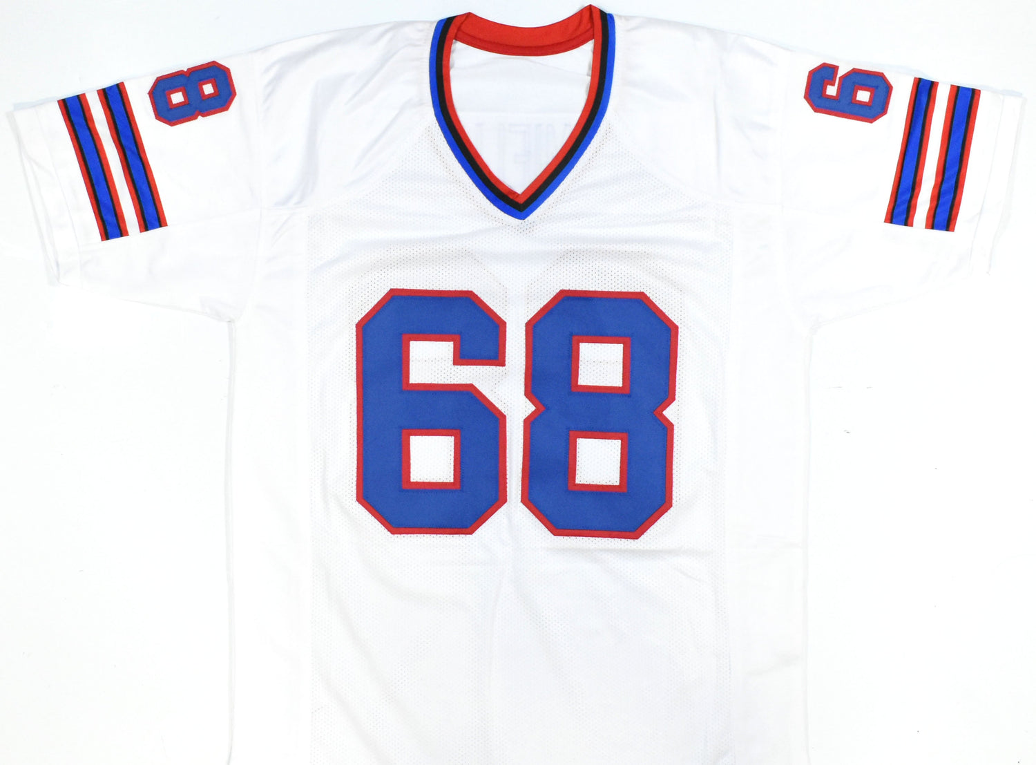 This is a must-have for any Buffalo Bills fan or football memorabilia collector — an authentic style XL jersey hand-signed by NFL Hall of Famer Joe DeLamielleure. Known for his dominance on the offensive line and induction into the Pro Football Hall of Fame in 2003, DeLamielleure played a pivotal role in Buffalo Bills history during the 1970s as part of the iconic "Electric Company" offensive line that helped power O.J. Simpson to record-setting seasons. Please note: THIS IS NOT AN OFFICIAL NFL JERSEY. It has no logos, tags, or emblems. Instead, it is a custom-made, non-branded jersey designed in authentic Buffalo Bills style, featuring high-quality stitched letters and numbers for display-worthy presentation. Each jersey comes with trusted Prova Authentication, including a numbered sticker hologram verified through the Prova website, ensuring the authenticity of Joe DeLamielleure's autograph. This signature was obtained through an organized autograph event — either via public appearance or private signing.