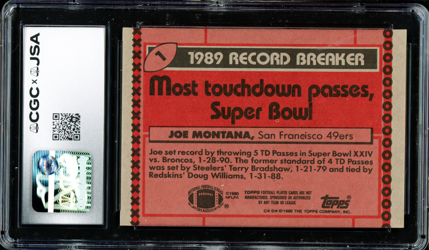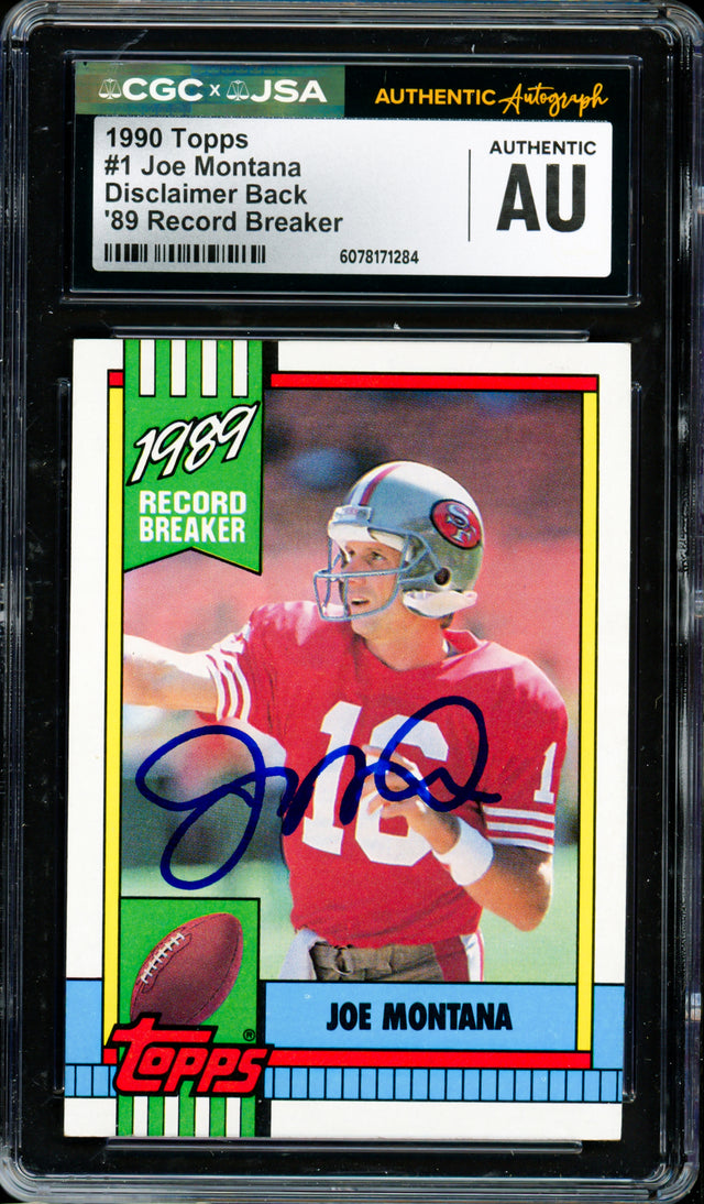 Joe Montana Autographed 1990 Topps Card #1 San Francisco 49ers CGC x JSA #6078171284