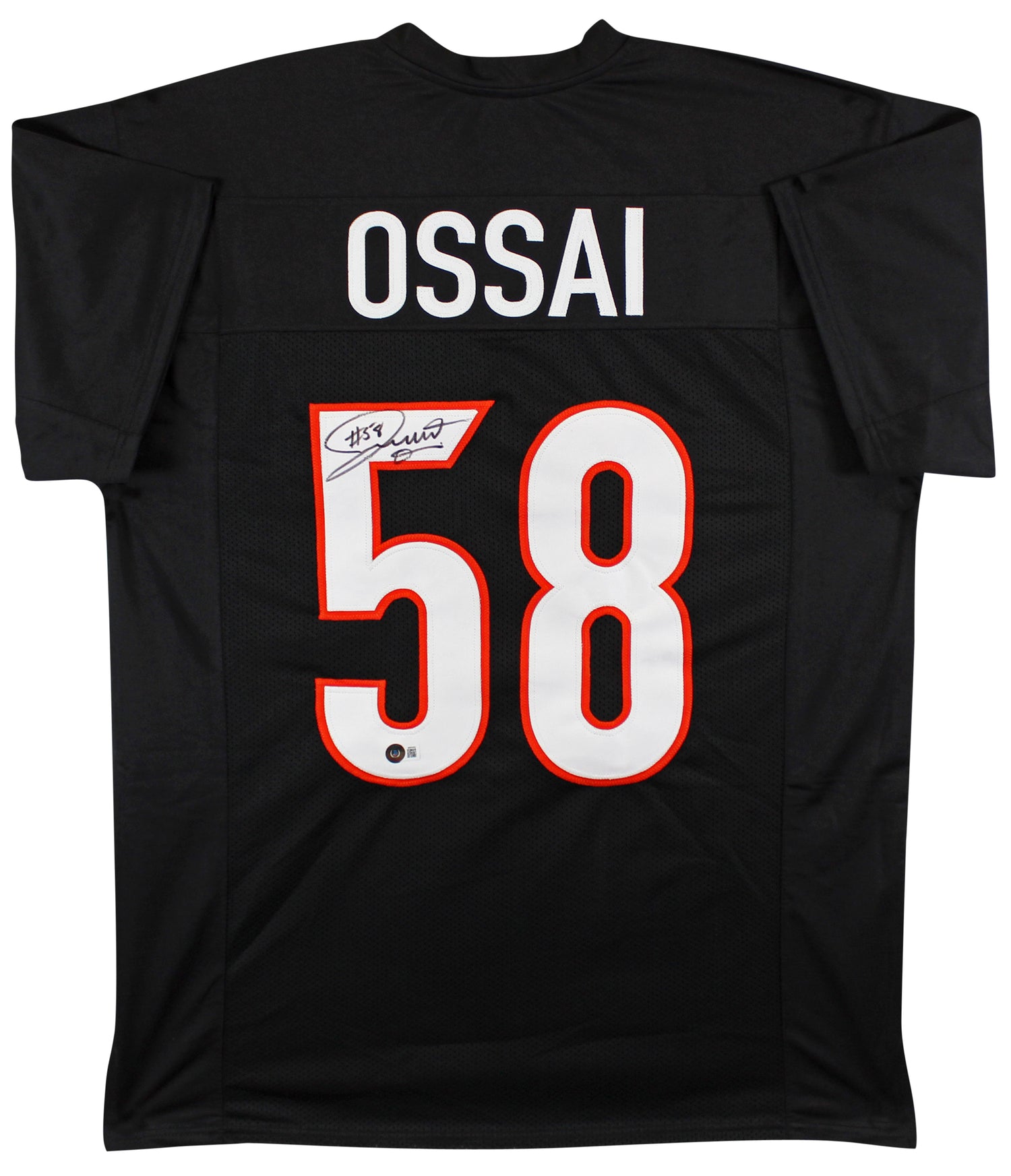 Own a piece of Cincinnati Bengals history with this Autographed Black Pro Style Jersey personally signed by Joseph Ossai. A rising star on the Bengals' defensive line, Joseph Ossai has quickly become a fan favorite thanks to his relentless energy and playmaking ability. This signed jersey is a must-have collector’s item for any serious NFL memorabilia enthusiast or Cincinnati Bengals supporter. The jersey is 100% Authentic, backed by Beckett Authentication Services (BAS), one of the most trusted names in the memorabilia industry. It's verified under the BAS Witnessed Protection Program, meaning a Beckett representative was present during the signing to ensure authenticity. This custom-stitched, X-Large pro style jersey is non-branded, making it perfect for framing or display. Due to the hand-signed nature of each item, signature placement, size, and ink strength may vary, adding to the uniqueness of your collectible.