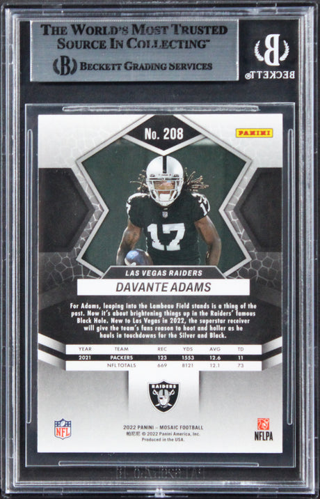 Very low stock (1 unit)$79Unit price /UnavailableRaiders Davante Adams Signed 2022 Panini Mosaic Thunder Lane #9 Card BAS Slabbed