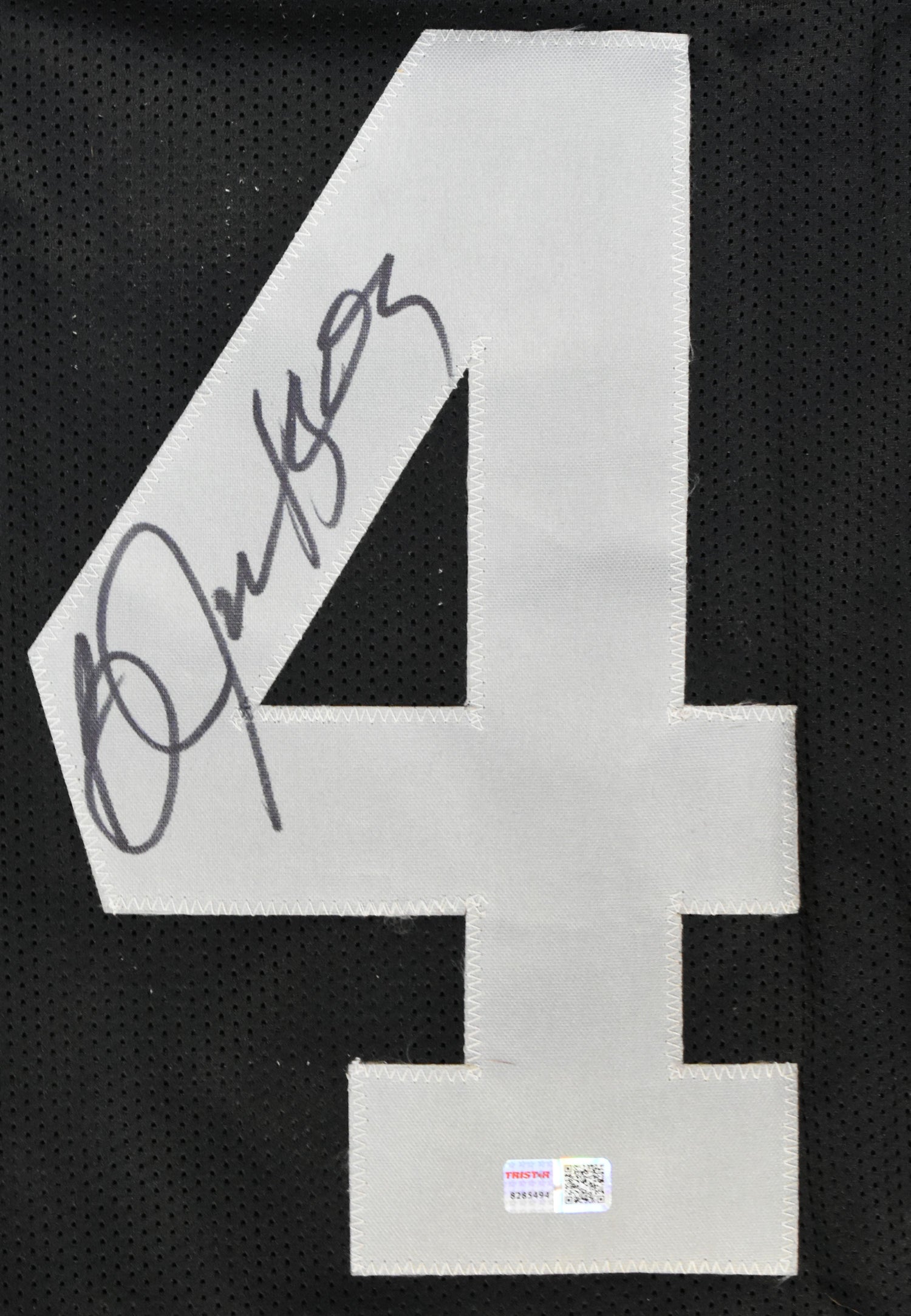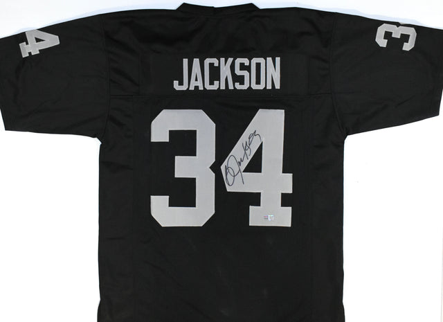 Own a piece of sports history with a hand-signed Bo Jackson Los Angeles Raiders custom jersey—a must-have for serious collectors and Raiders fans alike. This is a custom-made, authentic-style jersey featuring stitched letters and numbers, signed by the legendary dual-sport athlete, Bo Jackson, one of the most electrifying players to ever wear the silver and black of the Los Angeles Raiders. Please note: THIS IS NOT AN NFL JERSEY. IT HAS NO TAGS, NO LOGOS, AND NO OFFICIAL EMBLEMS. It is a unique collector's item designed to showcase Bo Jackson’s signature and legacy—perfect for display in your fan cave or memorabilia collection. Each jersey is authenticated by Tristar and includes: