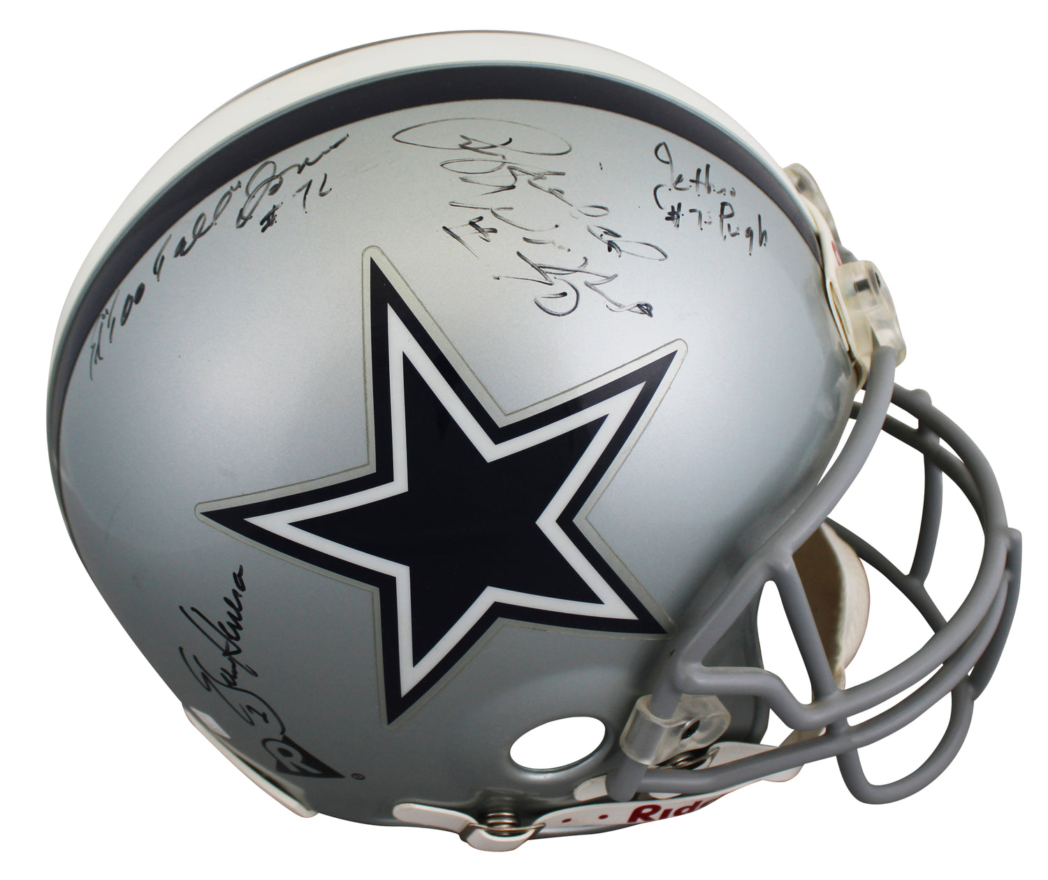 Own a rare piece of Dallas Cowboys history with this Autographed Authentic Full Size Proline Helmet, personally signed by seven legendary Cowboys players: Troy Aikman, Ed "Too Tall" Jones, Jethro Pugh, Efren Herrera, Duane Thomas, Jerry Groom, and Rayfield Wright. This remarkable collectible celebrates decades of Cowboys greatness, spanning Super Bowl champions and Pro Football Hall of Famers whose contributions helped build "America's Team" legacy.
