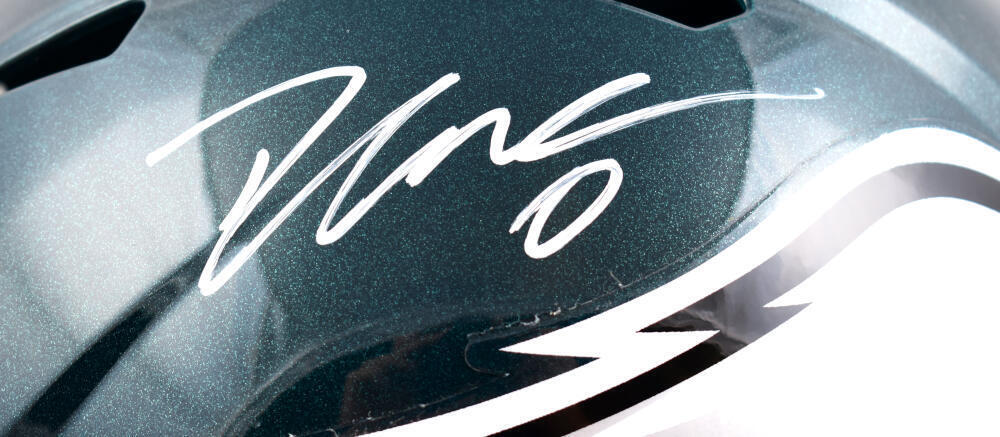This signed D'Andre Swift Philadelphia Eagles helmet is more than just a collectible—it's a tribute to one of the NFL’s rising stars. Whether you're a lifelong Eagles supporter, a dedicated memorabilia collector, or searching for the perfect sports gift, this authenticated helmet is a game-changer for any collection. Don’t miss out—secure this exclusive autographed piece today!