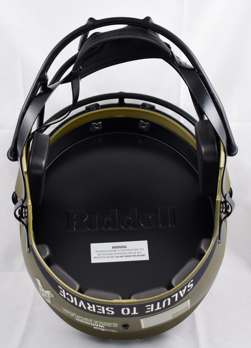 - Official Riddell Full-Size Salute to Service Speed Replica Helmet, designed to honor military heroes.