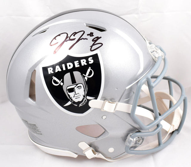 Own a piece of Las Vegas Raiders history with this Josh Jacobs autographed Riddell Full-Size Speed Authentic Helmet! Featuring Jacobs' signature and #8 inscription, this helmet is a must-have for dedicated Raiders fans and memorabilia collectors.