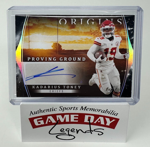 This Kadarius Toney autographed Panini Proving Ground trading card is a must-have for any serious NFL collector or Kansas City Chiefs fan. Featuring Toney's authentic signature, this 2023 Panini card (#PGS-KT) is an original—not a reprint—making it a true gem for sports memorabilia enthusiasts. Authenticated by Panini Authentic, this piece ensures quality and legitimacy, adding to its collectible value.