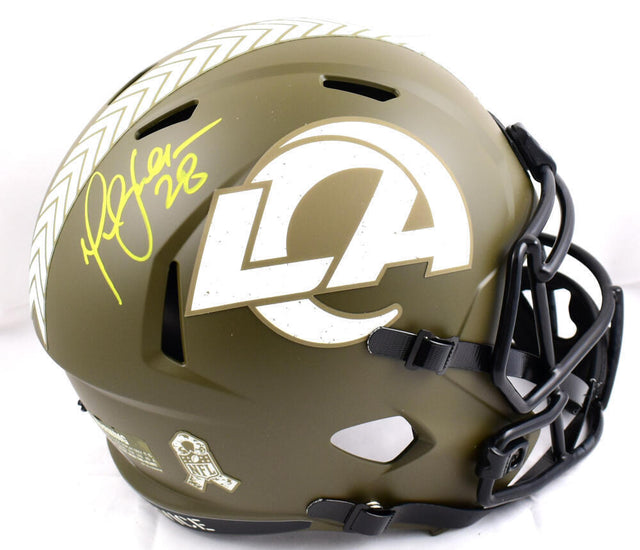 Marshall Faulk Signed F/S Rams Salute to Service Speed Helmet - Beckett W Holo