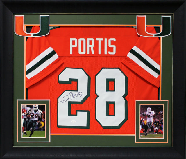 Own a piece of Miami Hurricanes history with this Clinton Portis Autographed Orange Pro Style Framed Jersey. This stunning collectible is 100% authentic, certified by JSA Witness, ensuring its legitimacy and value for serious collectors and fans alike.