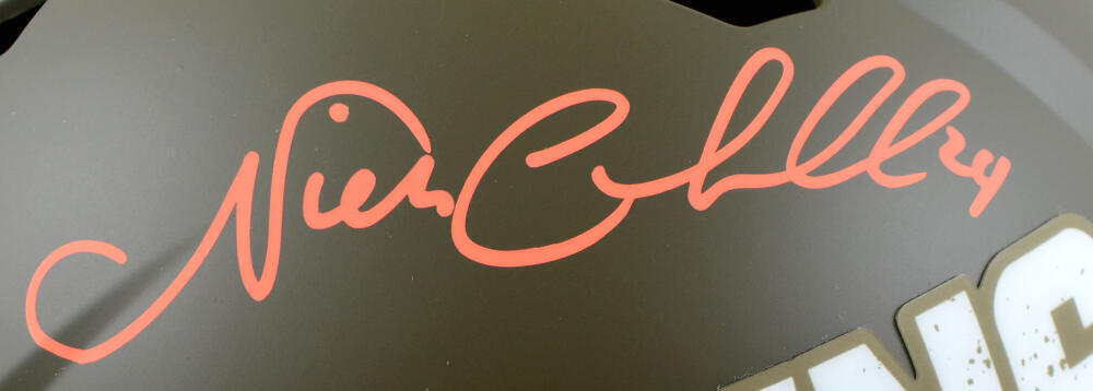 Nick Chubb Signed Browns F/S Salute to Service Speed Helmet-Beckett W Hologram