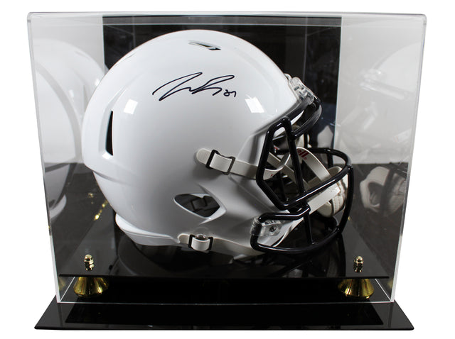 Own a piece of Penn State football history with this Pat Freiermuth Autographed Riddell Full-Size Speed Replica Helmet, complete with a UV Mirrored Back Acrylic Display Case. A must-have for collectors and Nittany Lions fans, this item is 100% authentic, featuring a tamper-proof Beckett Authentication Services (BAS) hologram for verification.