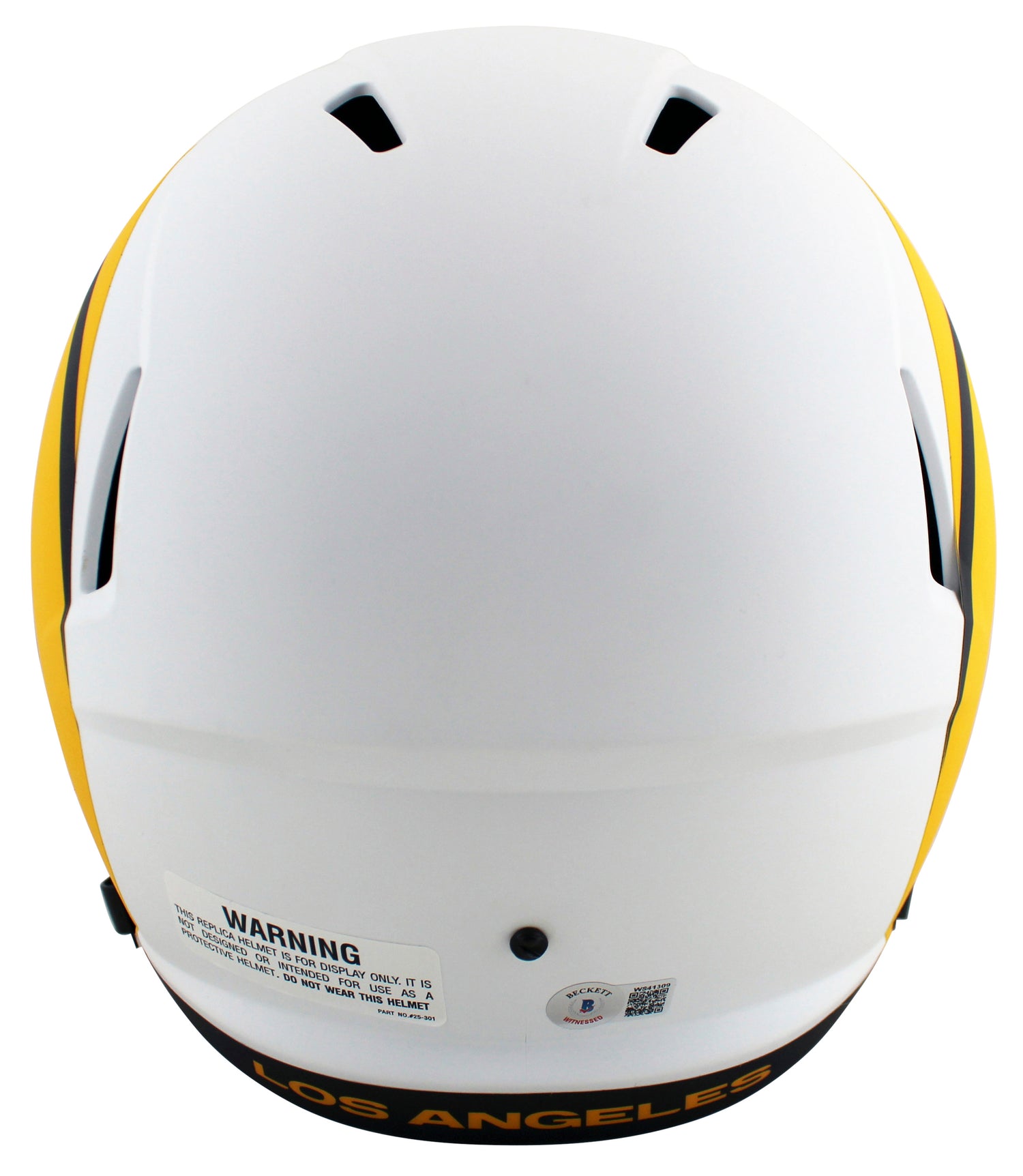 Own a piece of Los Angeles Rams history with this Marshall Faulk Autographed Alternate Lunar Riddell Full-Size Speed Replica Helmet. A Hall of Fame running back and a key figure in the Rams' "Greatest Show on Turf" era, Faulk's signature adds immense collectible value to this stunning display piece.
