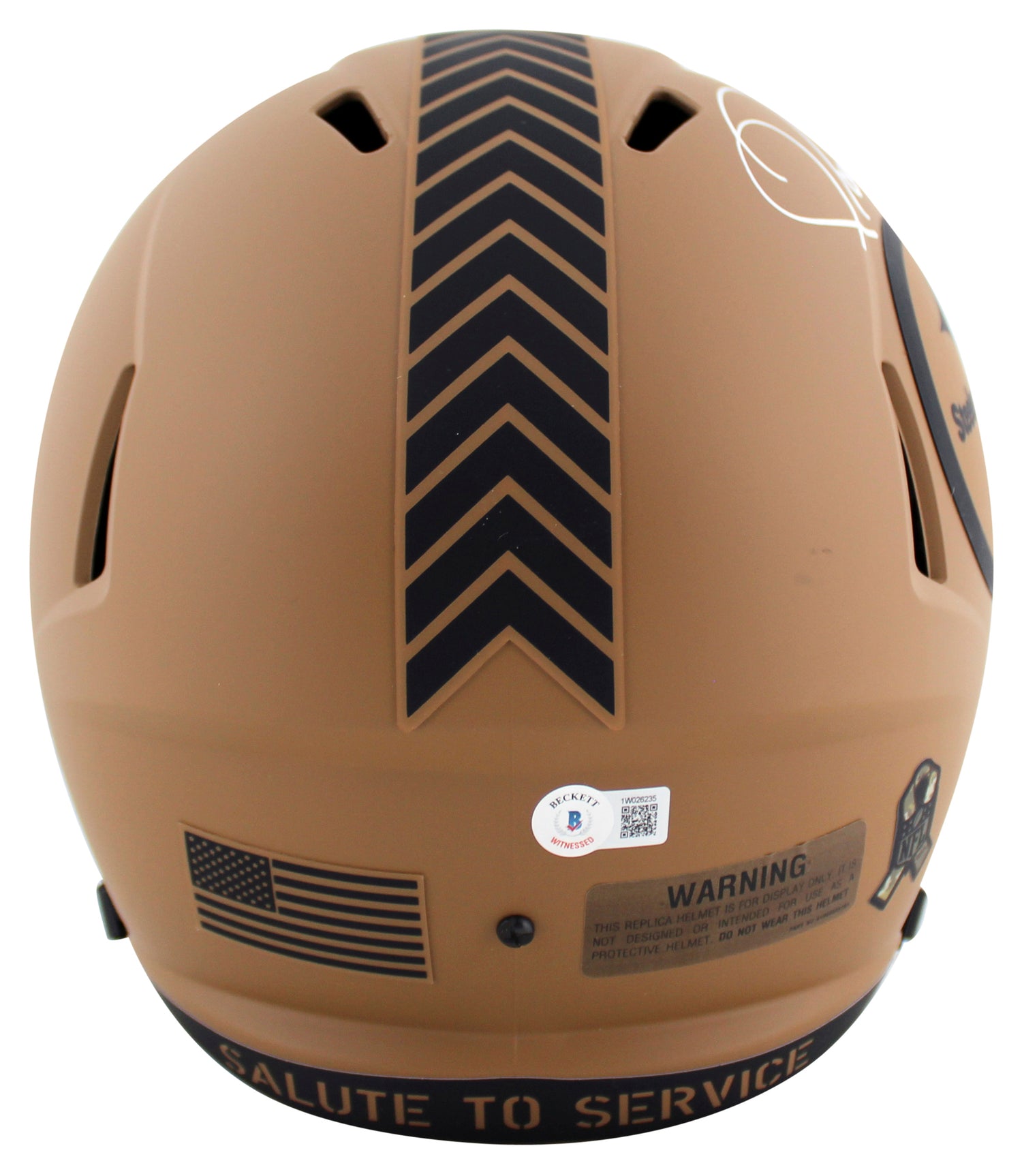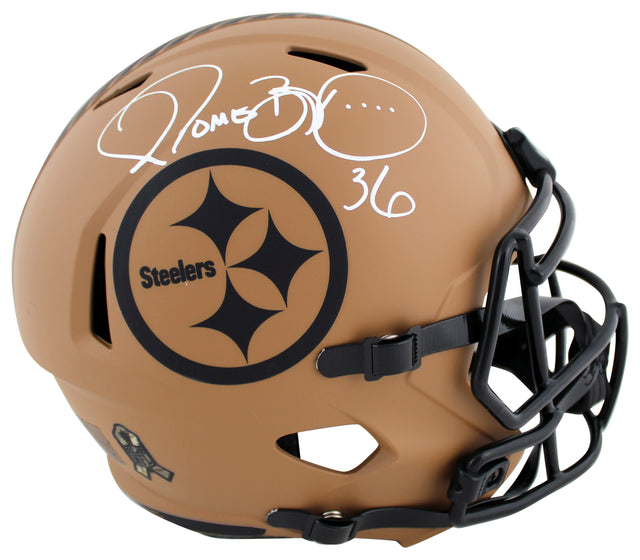 This Autographed Alternate 2023 Salute to Service II Riddell Full-Size Speed Replica Helmet is a must-have for any Pittsburgh Steelers fan or memorabilia collector. Personally signed by Hall of Famer Jerome Bettis, this collectible piece honors both Steelers history and the NFL's Salute to Service initiative.