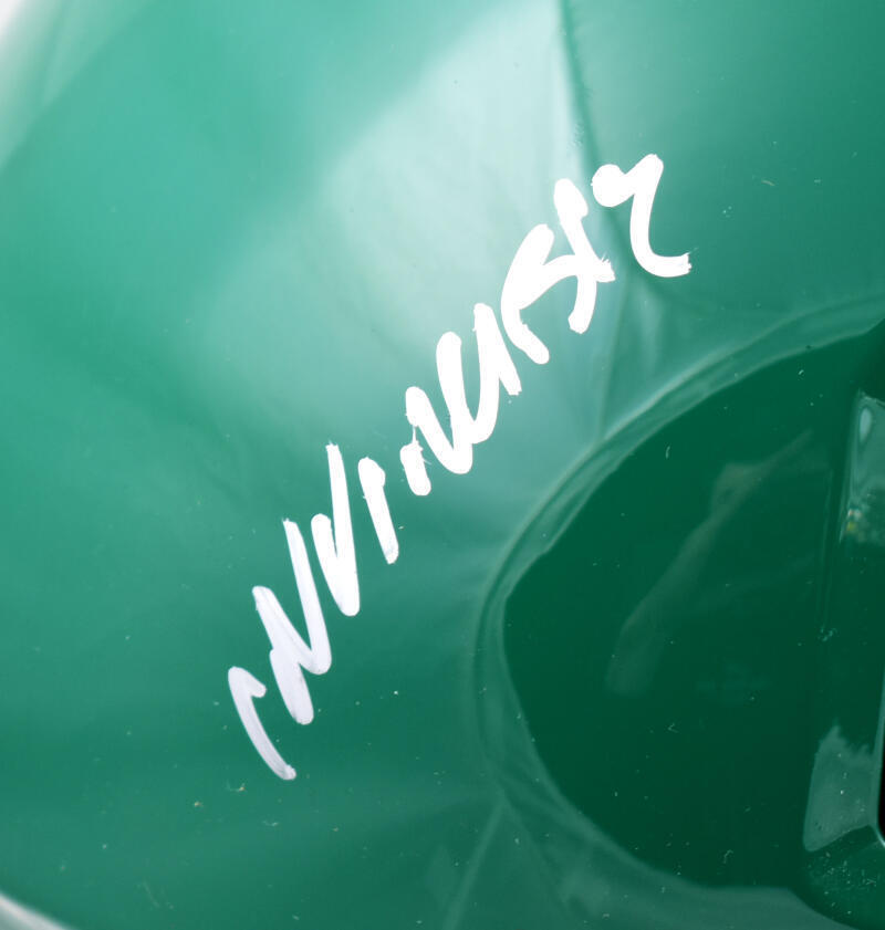 Own a piece of football history with this Vince Papale autographed Philadelphia Eagles Riddell Full-Size 74-95 Throwback Speed Replica Helmet. A true collector’s item, this helmet is personally signed by Vince Papale—the inspiration behind the hit movie *Invincible*—and comes with a "Rocky, Invincible" inscription, making it even more special for Eagles fans and memorabilia collectors.