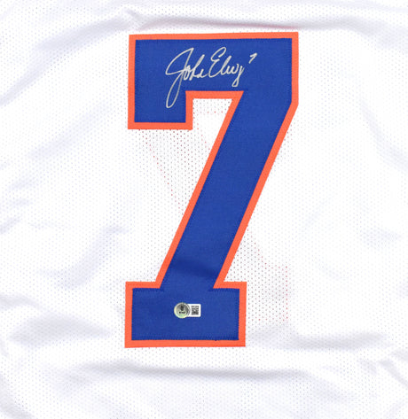 John Elway Autographed White Pro Style Jersey - Beckett W Hologram *Silver