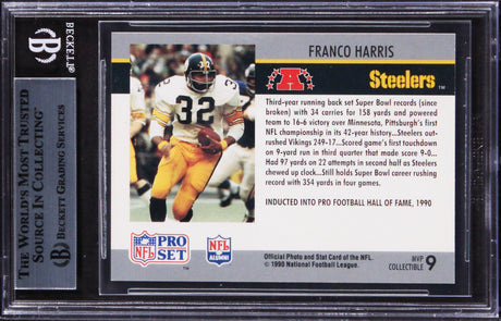 Steelers Franco Harris Signed 1990 Pro Set Super Bowl MVP'S #9 Card BAS Slabbed