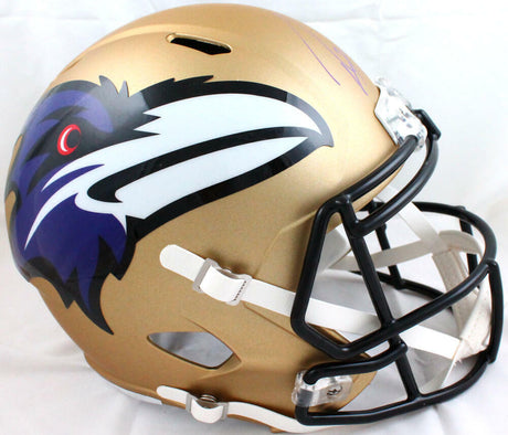 Ray Lewis Autographed Ravens F/S AMP Speed Helmet - Beckett W Auth *Purple