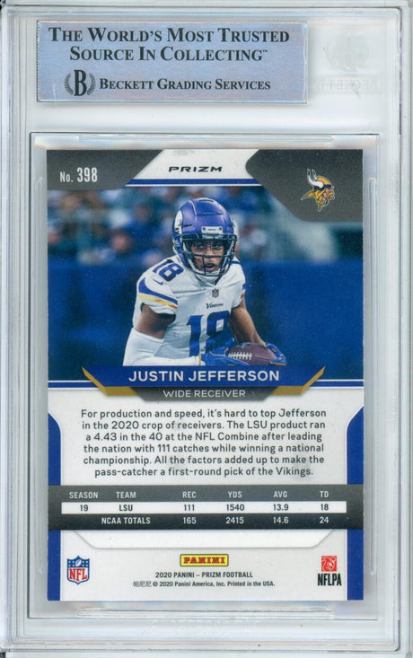 2020 Panini Prizm #398A Justin Jefferson Auto Minnesota Vikings BGS Autograph 10