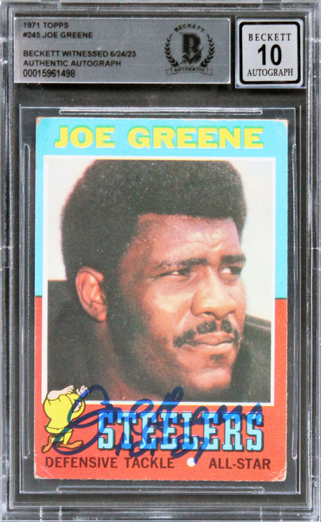 Steelers Joe Greene "HOF 87" Signed 1971 Topps #245 RC Card Auto 10 BAS Slab 7