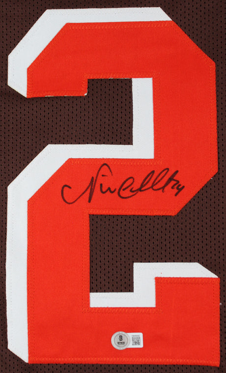 Myles Garrett Signed Brown With White #'s Custom Football Jersey (Beckett)