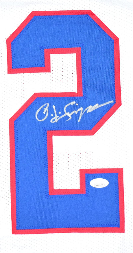 O.J. Simpson Autographed White Pro Style STAT Jersey- JSA W *Black