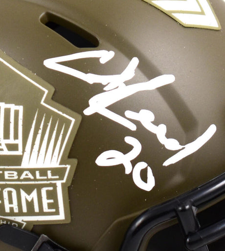 Barry Sanders Signed Detroit Lions FLASH Riddell Speed Mini Helmet (In White Ink)