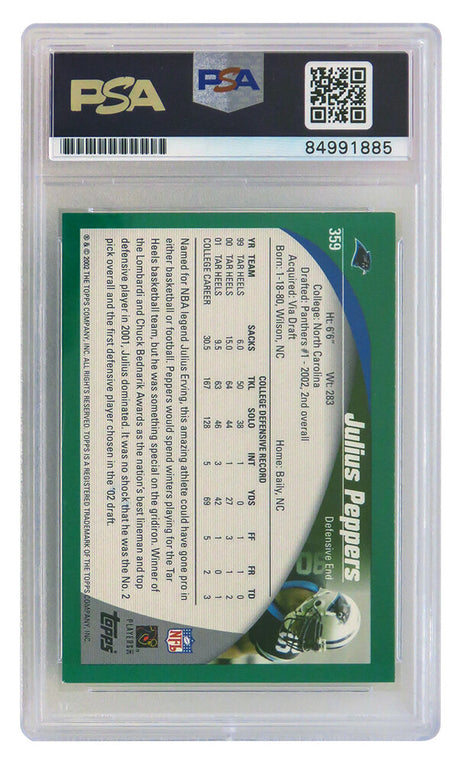 Julius Peppers Signed Carolina Panthers 2002 Topps Football Rookie Card #359 - (PSA Encapsulated)