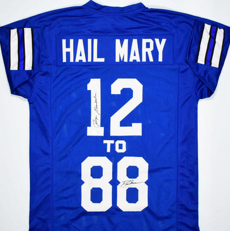 Roger Staubach Drew Pearson Autographed Blue Pro Style Jersey-Beckett W Hologram