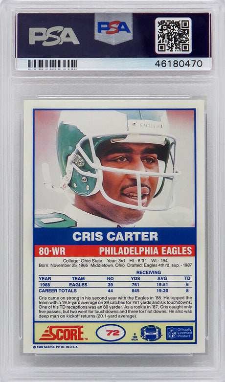Cris Carter (Philadelphia Eagles) 1989 Score Football #72 RC Rookie Card - PSA 10 GEM MINT