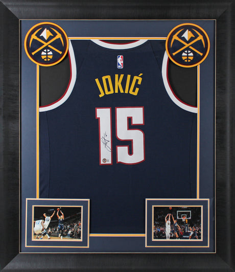 Nuggets Nikola Jokic Signed Navy Blue Nike Swingman Framed Jersey BAS 2