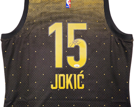 A Nikola Jokic signed jersey is one of the most sought-after pieces of NBA memorabilia available today. The #15 Denver Nuggets jersey has been worn during a run of individual and team excellence that includes three MVP awards (2021, 2022, 2024), a 2023 NBA Championship with Finals MVP honors, and the first 2,000-point, 1,000-rebound, 500-assist season in league history. Pristine Marketplace carries 60 authenticated Jokic jersey options, including Nuggets home, away, City Edition, and championship-commemorative styles — all hand-signed by Jokic himself.
