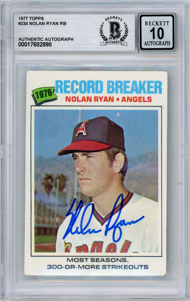 - Authentic hand-signed 1977 Topps Record Breaker #234 card featuring Nolan Ryan of the California Angels