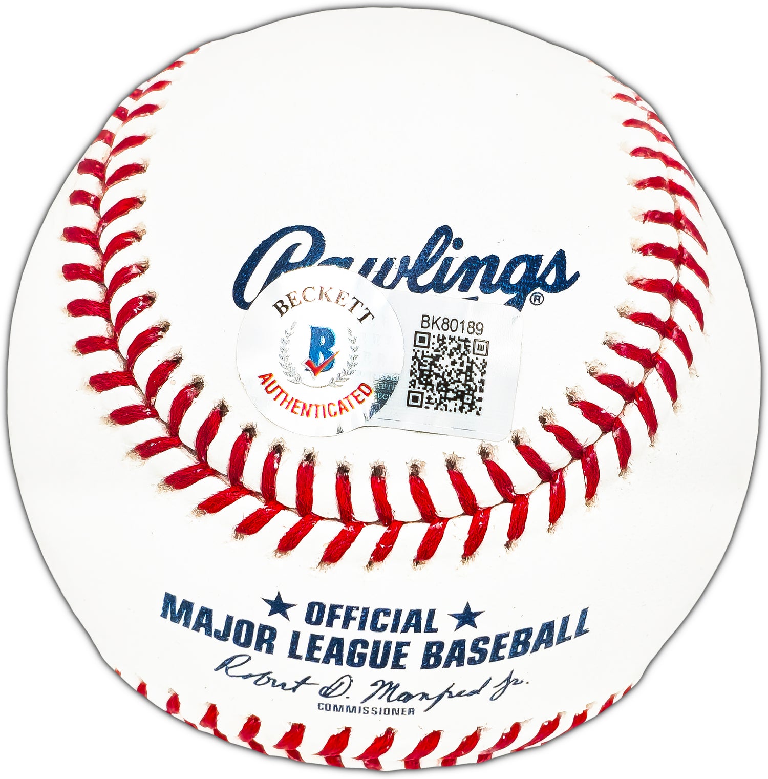 This Official MLB Baseball has been hand-signed by legendary pitcher Nolan Ryan and features the exclusive inscription "5714 K's," commemorating his record 5,714 career strikeouts—an achievement that cements his place in baseball history. An essential collectible for baseball fans and memorabilia enthusiasts, this autographed baseball celebrates one of the most dominant pitchers of all time.