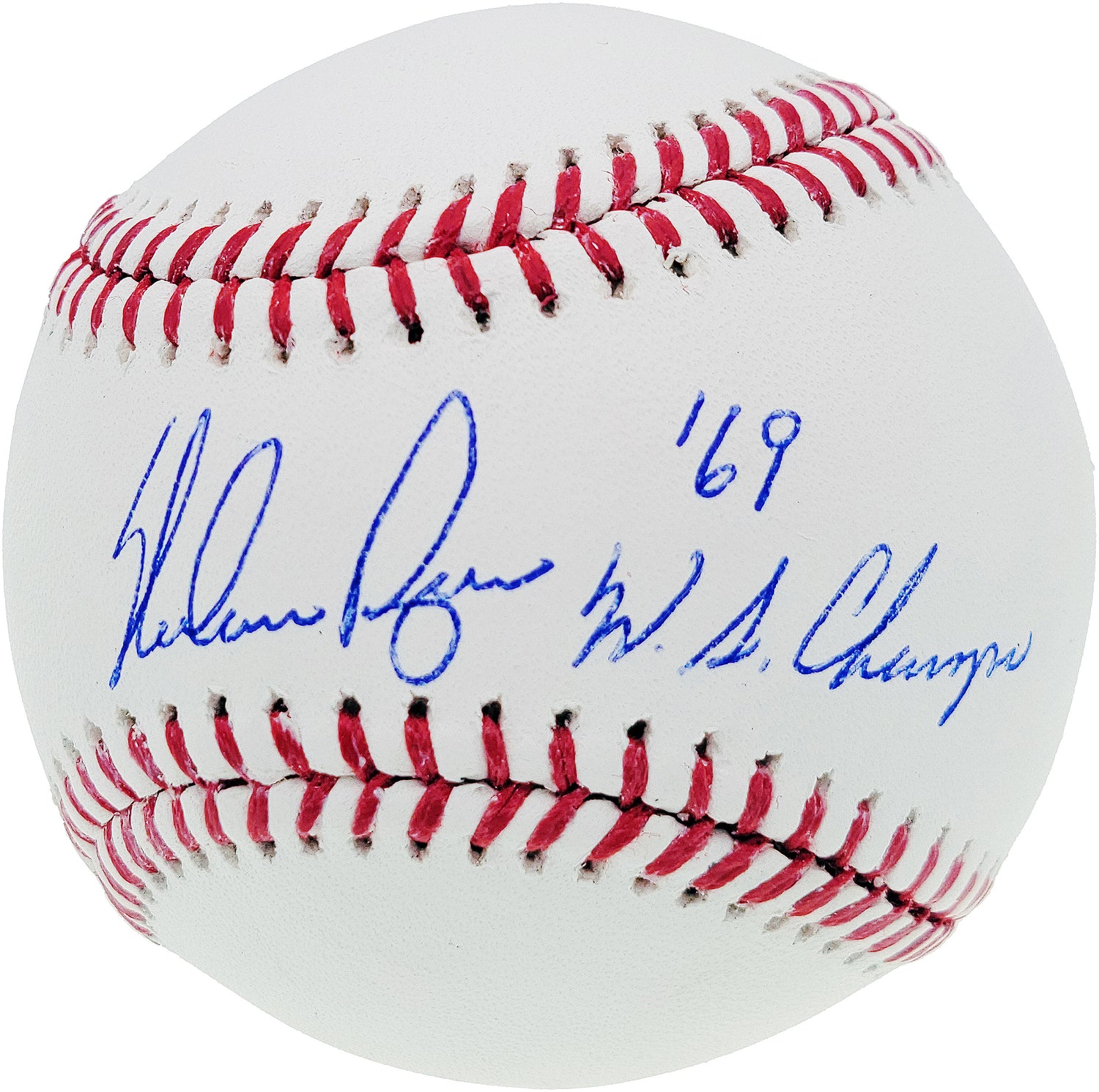 This Official MLB Baseball has been hand-signed by Nolan Ryan and inscribed with "69 WS Champs", celebrating the historic 1969 World Series championship. A must-have for baseball collectors and Mets fans, this rare piece pays tribute to Ryan’s role in the New York Mets' legendary run to their first-ever title.